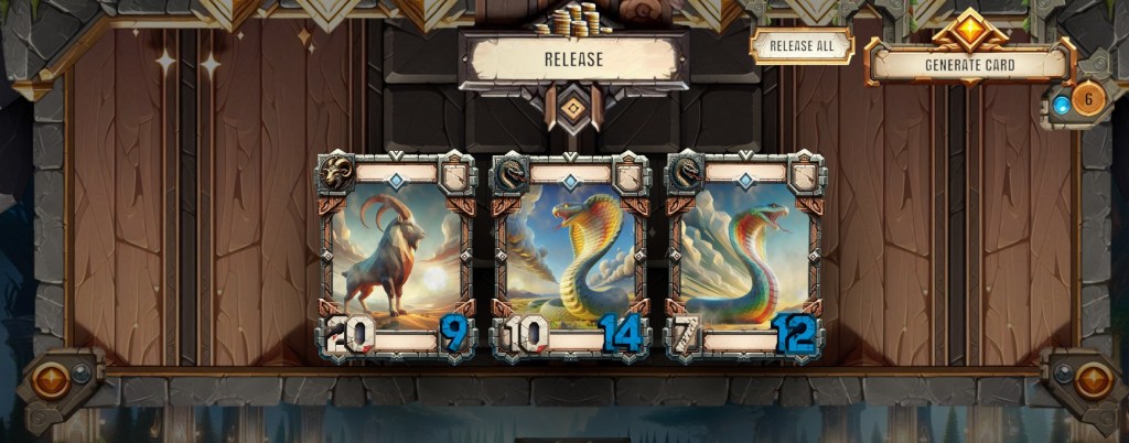 Indem wir Karten generieren lassen haben wir die Möglichkeit, uns ein Deck nach unseren Vorlieben anzulegen. Dabei hat jede Tierart (zB. Tiger, Drache, Hund, Maus, usw.) seine eigenen Eigenschaften. Man kann sehr strategisch vorgehen, indem man sich sein Deck entsprechend anpasst. Zum Beispiel gibt es Erhöhungen der Offensivwerte, der Defensivwerte oder auch einen Schadenschild, der verhindert, dass die Karte im ersten Zug Schaden nimmt.